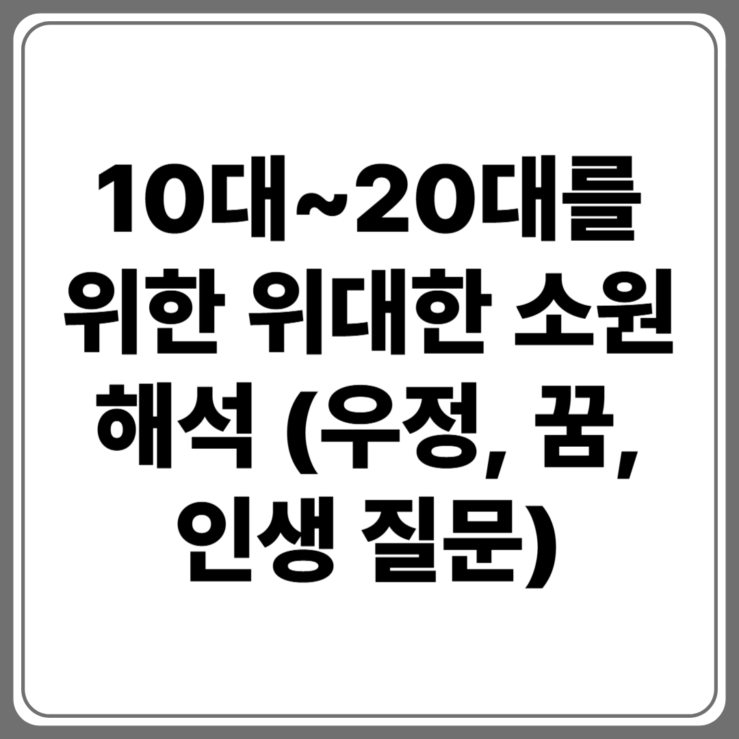 <위대한 소원>은 10대~20대 청춘에게 단순한 감동 영화가 아닙니다. 우정의 본질을 돌아보게 하고, 진짜 꿈이 무엇인지 묻게 하며, 인생의 중요한 질문을 가볍지만 진심으로 던져주는 영화입니다. 이 영화는 죽음을 말하면서도 삶을 이야기하고, 웃음을 주면서도 울림을 남깁니다. 아직 인생의 정답을 찾지 못한 청춘이라면, 이 영화를 통해 잠시 멈춰 서서 자신을 돌아보는 시간을 가져보길 추천합니다. 가벼운 유머 속에 묵직한 질문이 숨어 있는 <위대한 소원>, 지금 당신의 삶에도 꼭 필요한 이야기입니다.